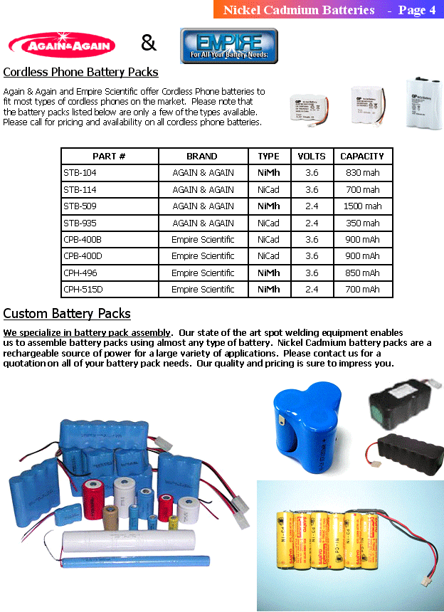 HOME | PRODUCT LINES | CAPABILITIES | CONTACT US | CUSTOM BATTERY ASSEMBLY | CATALOGUE